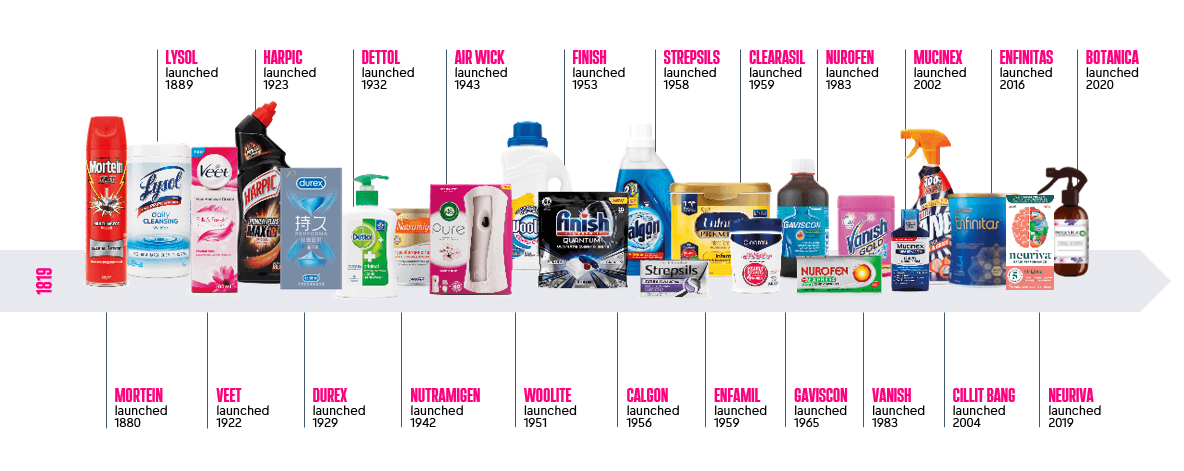 利洁时公司是福布斯500强企业。2020年在伦敦富时指数公司(FTSE)排名前10位,市值超过500亿英镑。员工人数达40,000人,全球设有60个分公司,在五大洲拥有48家工厂。目前旗下的知名品牌超过300个,分为健康护理、卫生护理、营养保健三大核心品类,产品行销200个国家和地区。